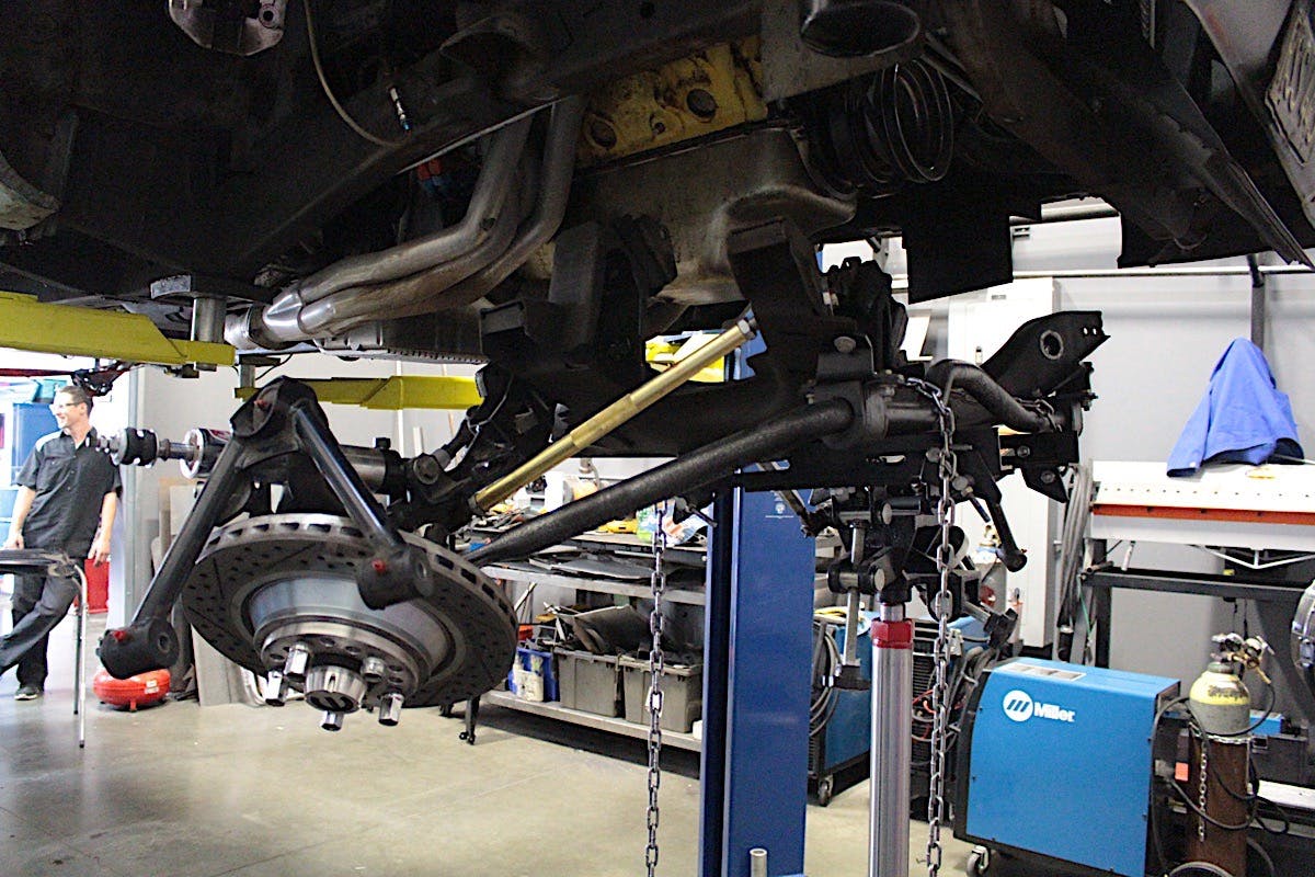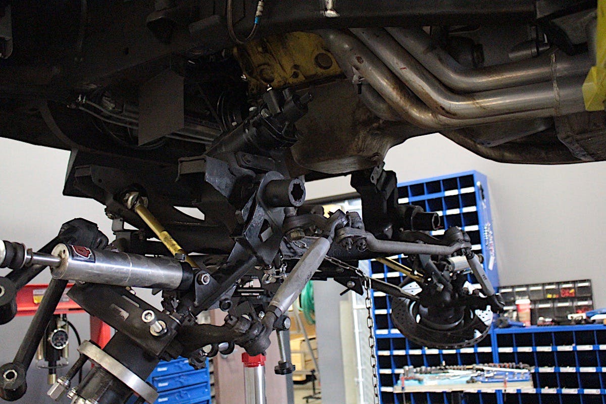 While this installation can be performed without removing the motor or transmission, you will need an engine bridge across the top of the motor to relieve stress and raise it slightly so the old suspension can be removed, and the use of a lift is highly recommended.