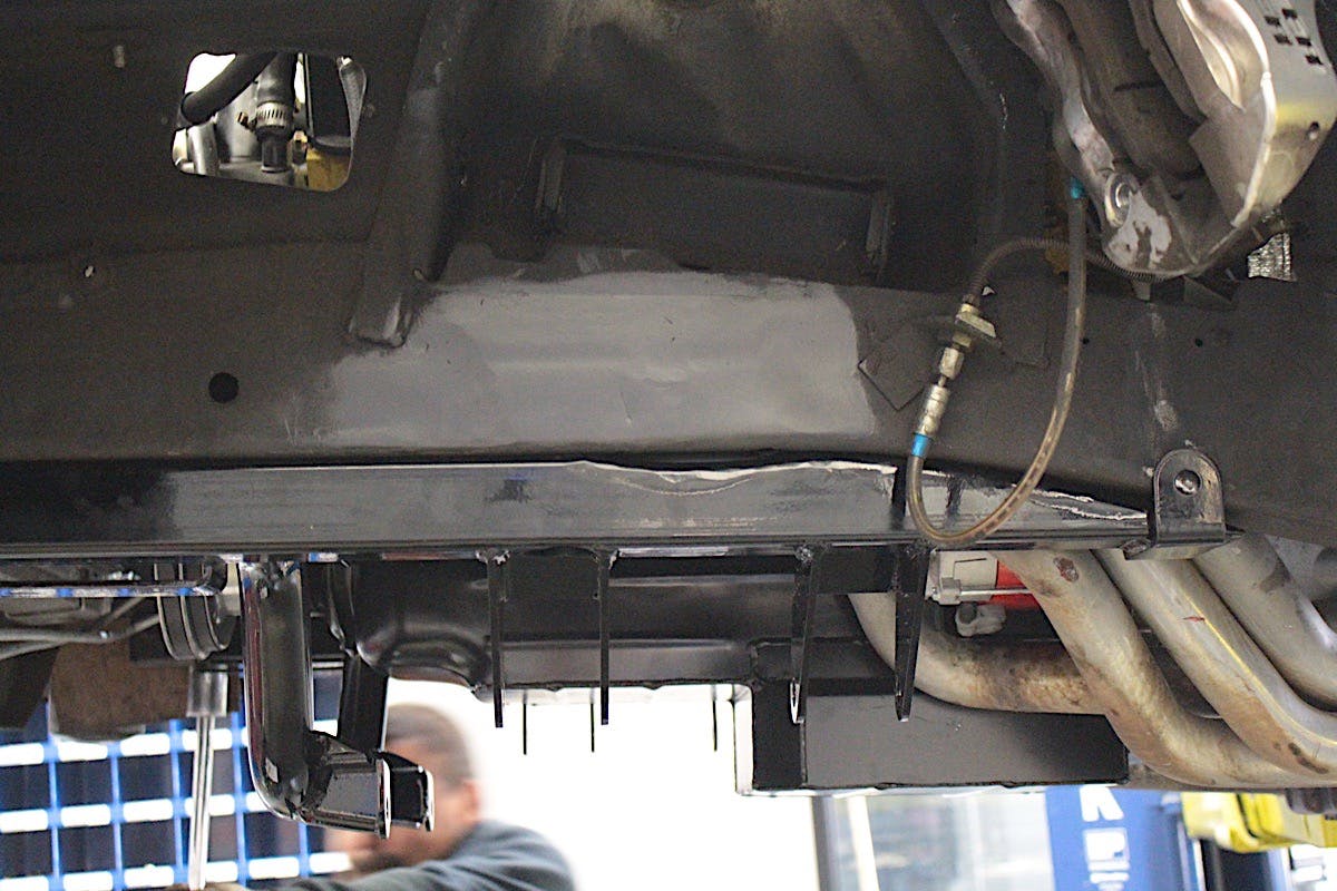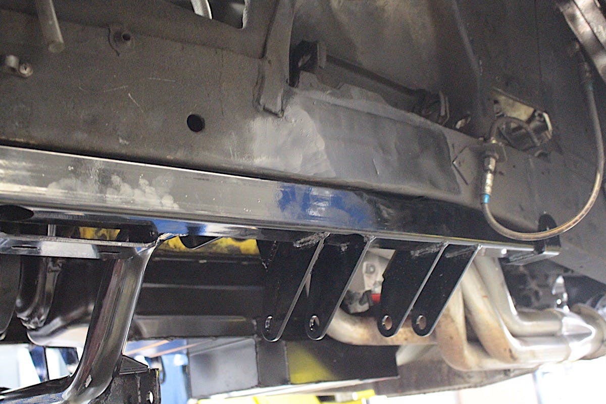 Done with that already? Now is the time to take a closer look at the front frame rails of the car to ensure that they don’t have any problem areas that need to be straightened out before the new system can go in. Fortunately most issues can be handled with some skillfully-performed hammer work, as tolerances to which these vehicles were manufactured often varied by as much as ¼ inch on each side, and the kit’s K-member mounting brackets are designed to accommodate slight deficiencies.