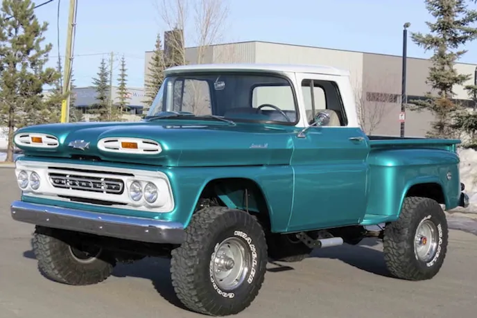 These were available in a smooth “Fleetside” or a fendered “Stepside” version in Chevrolet models. GMC designated them “Wide-side” and “Fenderside.” Both were available in long and short bed versions.