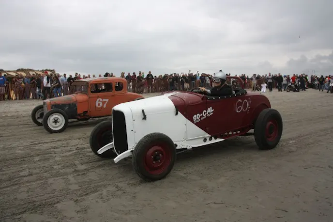 Two amazing cars driven by two diehard hot rod fans, it’s only fitting that the men and their rides prepped a bit for their race in the sand by doing something every hot rod owner should do-drive their cars.
