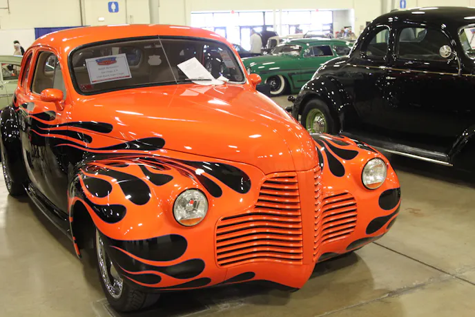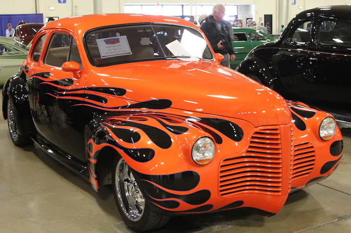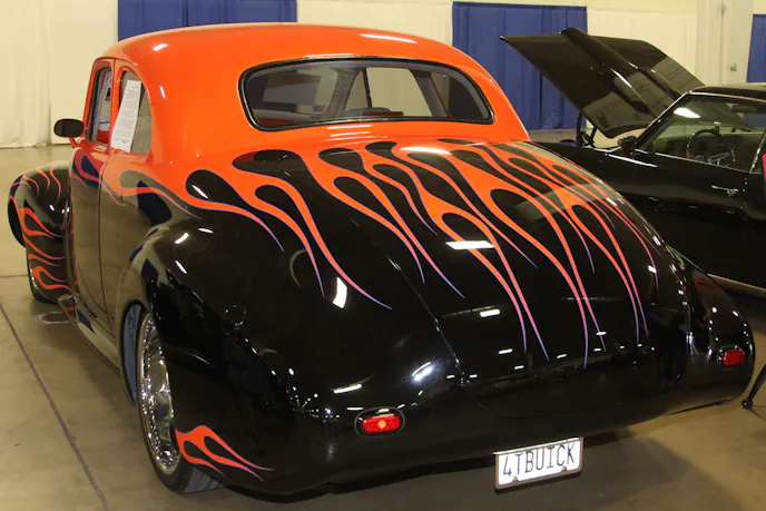 According to the car’s placard, this beauty was built by Street Toys in Muskitine, Iowa by custom car builder Mike Thieker. Featured in several magazines, and winner of several Goodguys “pick” awards, this coupe was selected as the 2009 Chicago World of Wheels Full Custom Street Rod Coupe. The car has racked up more Best in Show and Best Paint awards than we can list here.