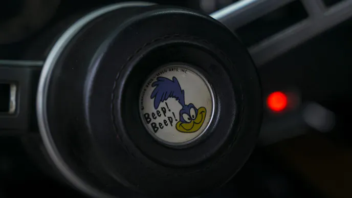 The finishing touches to the car included a Superbird decal on the wing’s vertical struts, driver’s side headlight cover, steering wheel insert, and door panels, which featured a picture of the Warner Brothers Roadrunner cartoon character holding a racing helmet. The final detail was a “beep-beep” horn which mimicked his famous tagline.