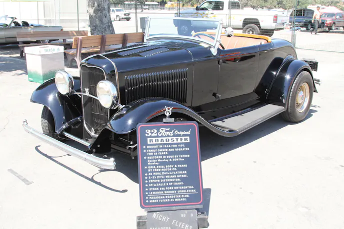 This past weekend at the LA Roadsters Show, way out near the back gate by the swap meet, we spotted one of the sweetest looking ’32 Roadsters. It was obvious that this car was well taken care of, and enjoyed. It wasn’t a museum piece, it appeared to have some miles put on it – as any great car should – probably to and from events. Despite the road trips, this roadster looked to be pampered and loved.
