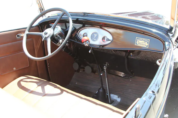 The roadster maintained the stock 378:1 Ford differential, which was the most common of the four gear ratios for the Model A Fords. A ’39 LaSalle 3-speed transmission is used to transfer power to the rear wheels. The LaSalle transmissions were as bulletproof as you could get in those days, and were another favorite of the 1950’s hot rod crowd.