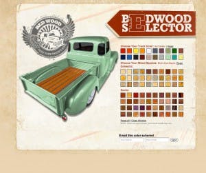 One of the most interesting ideas of the new and improved Bed Wood website is the Bed Wood Visualizer. The Visualizer allows visitors to see how their vehicle colors match up against the Bed Wood inventory of domestic and exotic woods. The Visualizer works like this: a visitor is able to change the color of the truck shown in the program and then can add whichever Bed Wood RetroLiner wood strikes his or her fancy. That way, a potential buyer will be able to see exactly what his truck will look like equipped with Bed Wood wood and strips. It really makes it easy to choose from among Bed Wood’s wide range of exotic and American woods, and it’s fun to play with. Want a flat-black truck with some exotic African black wood? We do, but you may like maple or teak with a red truck. Either way, it’s easy to use and easy to see on the Bed Wood Visualizer at www.bedwoodandparts.com/visualizer.