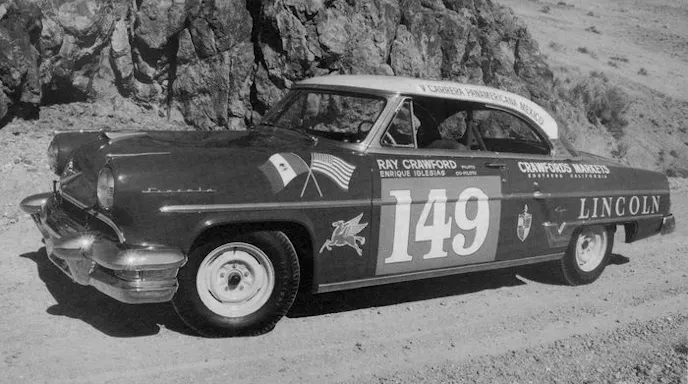 The La Carrera Panamericana was open to stock production cars, though some serious modifications were allowed to the suspension and engine to endure the grueling race. Lincoln sent two ‘54 Capri models to Bob Stroppe, though the 205 horsepower Y-block V8 engine was left largely untouched.