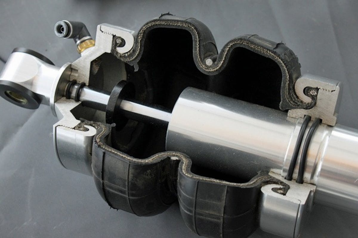 This product combines a oil shock with an air bag meaning you have an all in one suspension beauty – think of it like a coil over, but instead of a coil spring it has an air bag. Gone we’re the headaches of mounting external shocks to a suspension. These are mainly common in front suspension setups, where real estate isn’t common and can come at a high price.