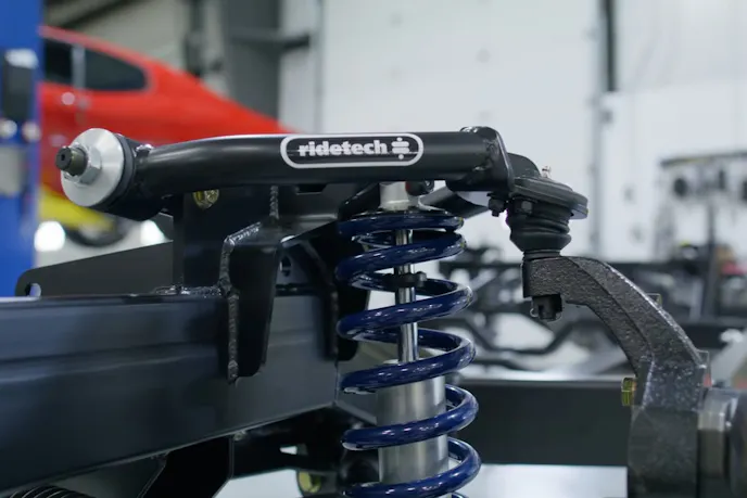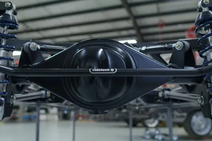 According to Ridetech, this isn’t a one-size-fits-all product. Builders start with the engineered chassis and then tailor it to their specific goals. The most important choice is the suspension type: you can choose between Ridetech’s popular coilover setup or its air suspension system. From there, you can select either the HQ single-adjustable or TQ triple-adjustable dampers to fine-tune the ride. Brakes and a steering rack are also selected by the customer to match the intended use of the car.
