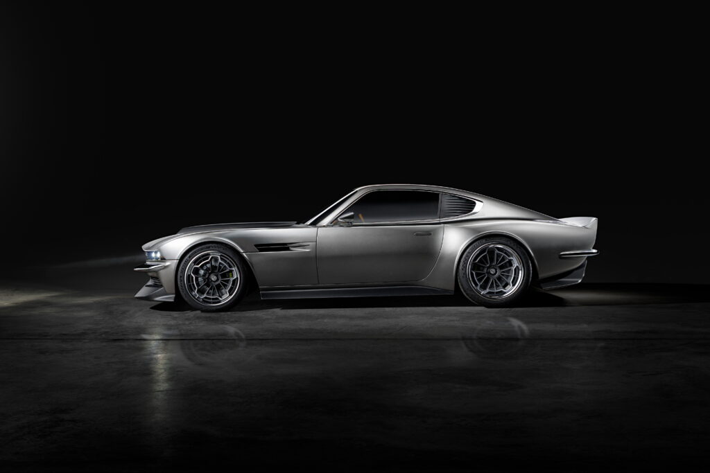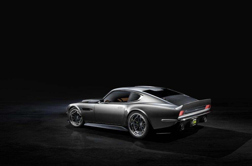 Octavia, a 1971 Aston Martin DBS is said to have more than 12,000 combined hours of engineering and craftsmanship in it. The bespoke carbon-fiber bodywork was widened eight inches and the rear 10. Under the clamshell bonnet is an 805-horsepower supercharged V8 backed by a six-speed manual trans.