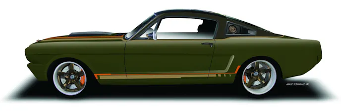 Espionage is the other Mustang, and the unique touch to this Fastback is the all carbon fiber body residing on a custom chassis. Under the custom hood of this “Spy Green” Mustang will be a Wegner Motorsports 416 cubic inch mill sporting a Whipple supercharger. Again, Flowmaster will pull the fumes from all 959 horsepower that this mill produces.