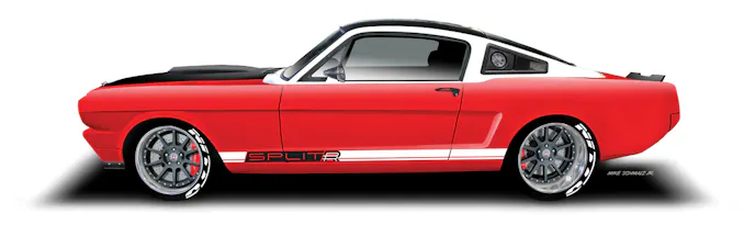 Ringbrothers rely on Royal Purple fluids to keep SPLITR running smoothly, and just as smooth is the Ford Race Red BASF Glasurit Waterborne paint. The custom wheels, as of yet not revealed, are wrapped in Nitto tires and the Mustang is sure to be a performer.