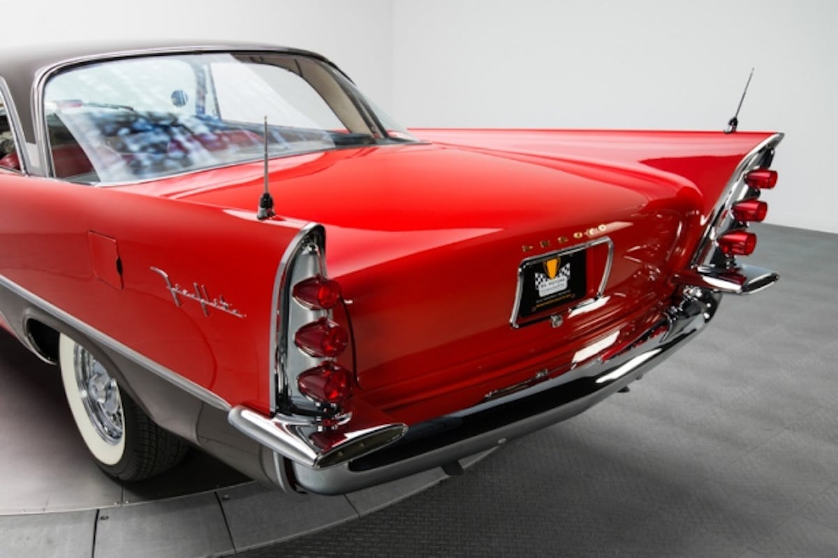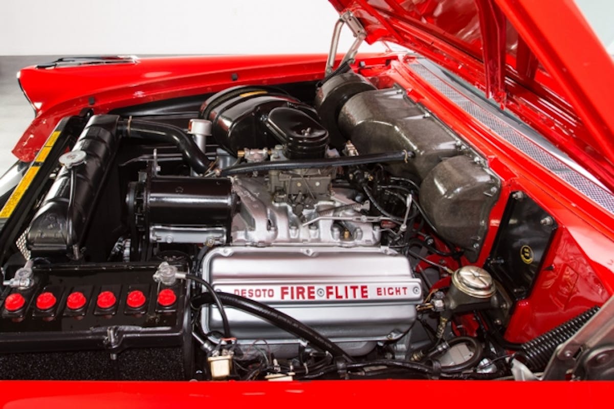 Just by looking at this car, you can tell the quality of workmanship that went into restoring it. In addition to the respectable amount of new chrome congruent with most 50s cars, this DeSoto features a factory-like dual exhaust system and its factory-correct Fiesta Red paint scheme with a Grey hardtop.