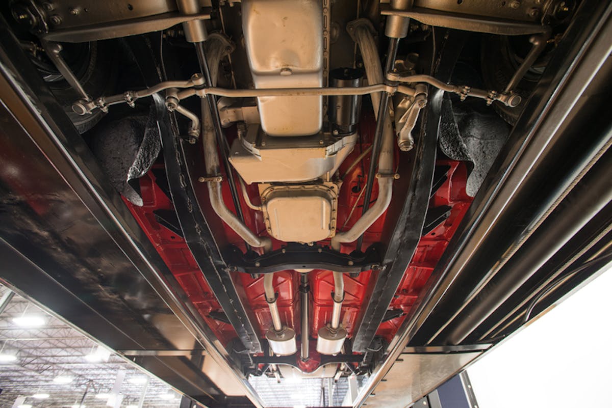 The interior follows suit with brand new two-tone Fiesta Red and grey upholstery, grey carpeting, and a new headliner.