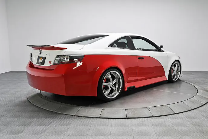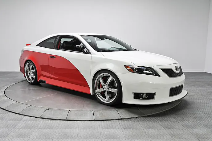 Toyota donated a custom two door Camry body to be used as the base of the exterior. RKM achieved the bodies’ NASCAR styling by custom fabricating a stock car body kit. The body kit’s bumpers where shaped to resemble NASCAR bumpers and they were given several authentic racing features such as Toyota emblems, carbon fiber brake ducts, fog lights and TRD emblems.