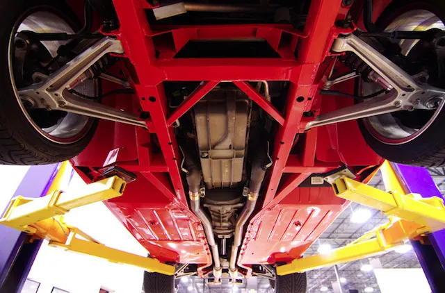 It’d be hard to tell from the underneath shot that this is actually a ‘Cuda, not a Viper. Also, your eyes are not deceiving you, as the interior has litlerally been tranformed from a 5-seater to a 2-seater.