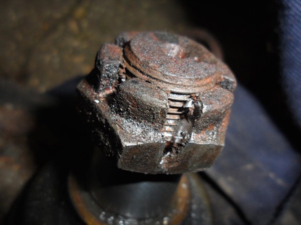 3. Relief Cuts: This method is our “sure-fire” method for removing most stripped bolts and nuts. It isn’t as clean or civilized as the others, but it is a heck of a lot faster. With this method you will be putting two-three cuts in the bolt head or nut. The goal is to cut just enough that you are almost all the way through the head of the bolt or the nut. Then hit the cuts with a chisel and a hammer a few times, thus splitting the nut or bolt and relieving the tension on them. With nuts you can normally just split it off of the bolt, clean up the threads, and install a new nut. With bolts you can use some locking jaw pliers to grab the bolt head and turn the bolt out. Usually the relief cuts will let the pliers squeeze the head of the bolt enough that it turns out easily.