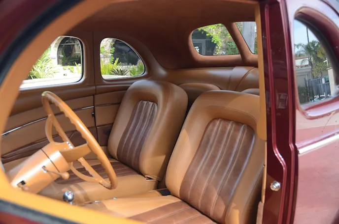 Charley Hutton’s Color Studio is responsible for the early Ford’s exquisite shade of cranberry red, a gorgeous paint scheme that was developed by Color Studio, blending together hues of red, gold and brown. Hutton’s shop also massaged the Nebraska street rod into the heart-stopper that it is today, by painting the car in 3 different stages.