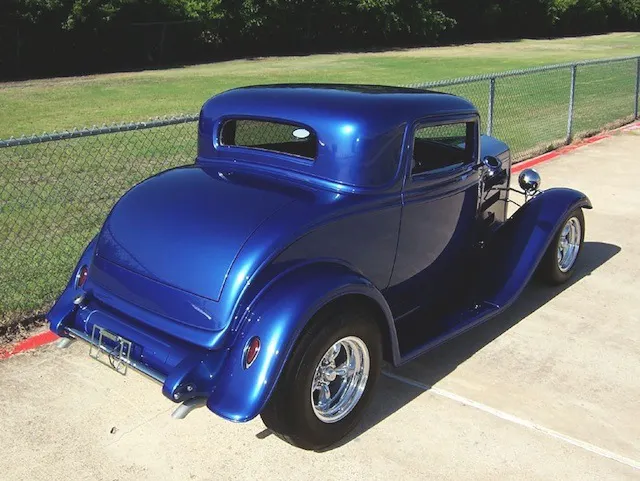 The Sachse Rod Shop of Sachse, Texas, has used TCI Engineering’s independent suspension, custom frame to form the platform of Rick Edward’s trick blue, ’32 Ford three-window.