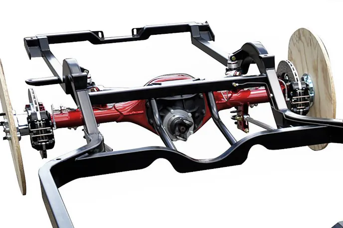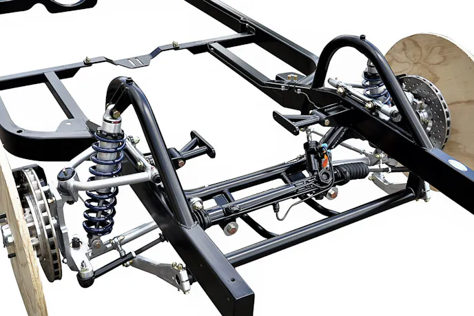 The updated front suspension includes needle bearing supported A-arms for smooth bind-free movement along with separate caster and camber adjustments. Extra-long coilovers have been positioned at each corner to improve the handling while providing a modern, luxury ride quality. A power rack and splined sway bars with billet arms are also provided as standard equipment.