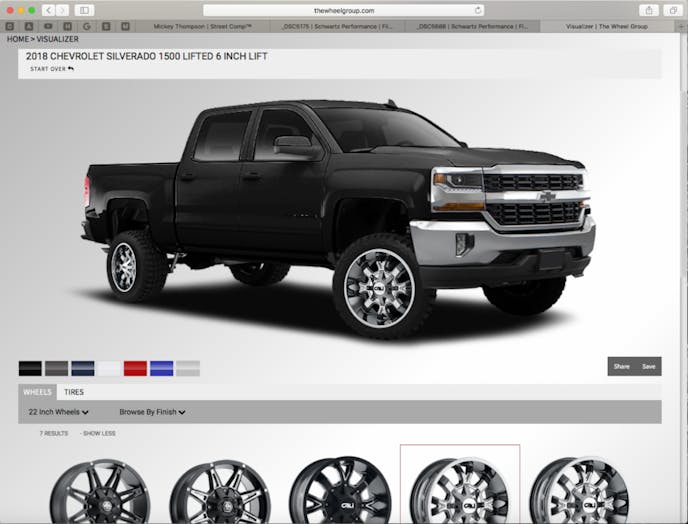 Luckily for you, The Wheel Group’s Visualizer allows you to do just that. From late model cars and trucks to classic rides, The Wheel Group’s got you covered. We can’t promise that every car you own will be available for visualization, but most of the big ones are there, and you can see them with a number of different wheel sizes and finishes. There’s even an options that shows you how wheels will look with a lift on your pickup, if you’re going the off-road route.