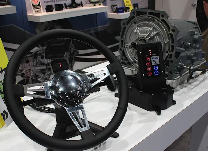 They’ve just developed a new type of push button shifter that will work with literally any transmission. PCS had one of these computerized shifter kits hooked up to a 4L60 transmission during a visit at their booth at this year’s SEMA show.