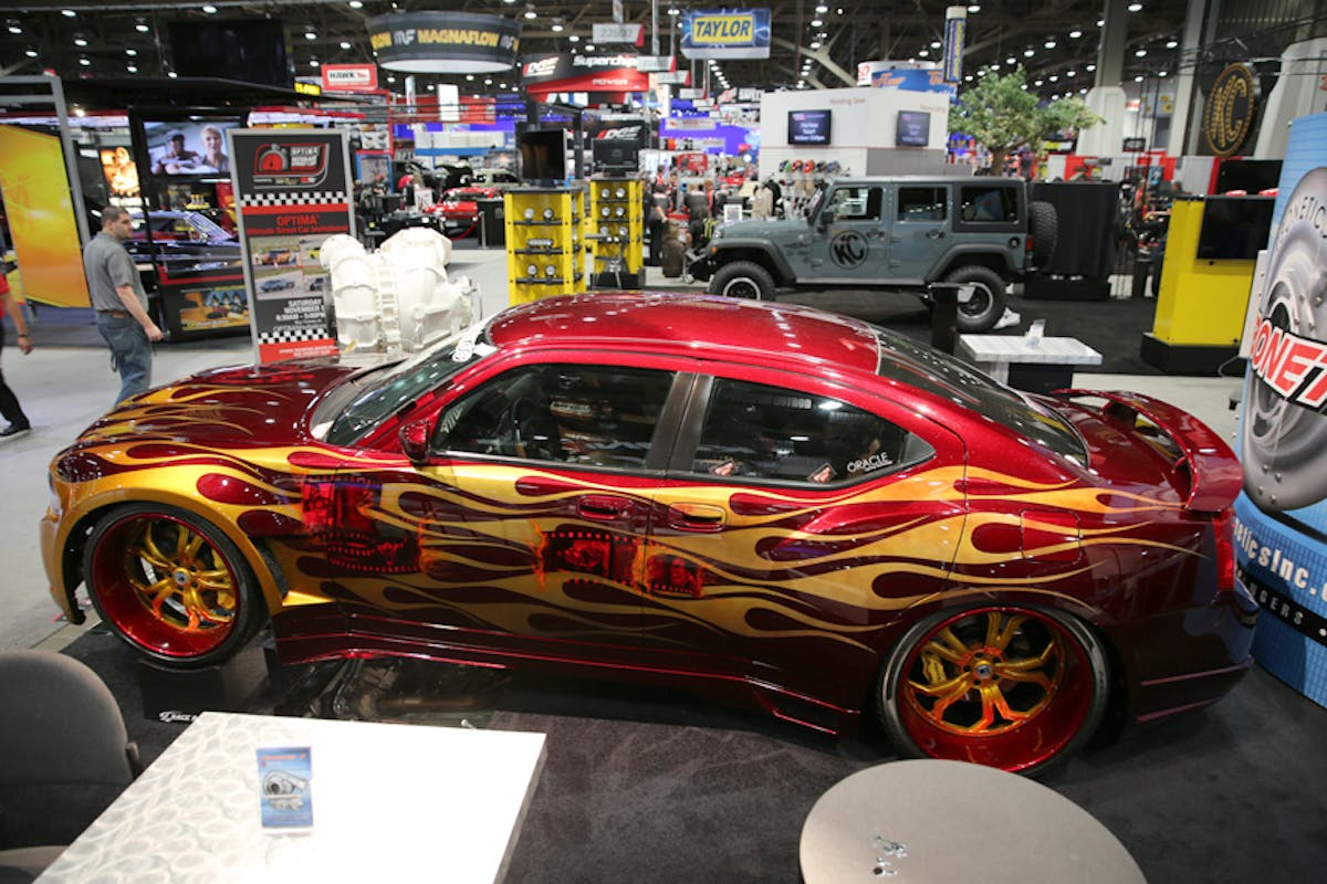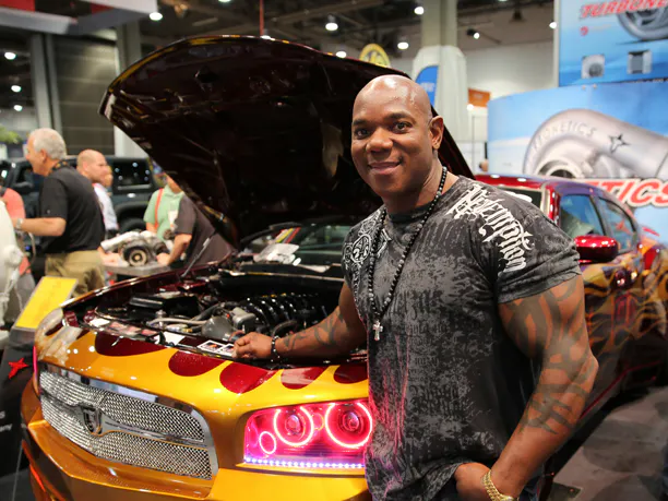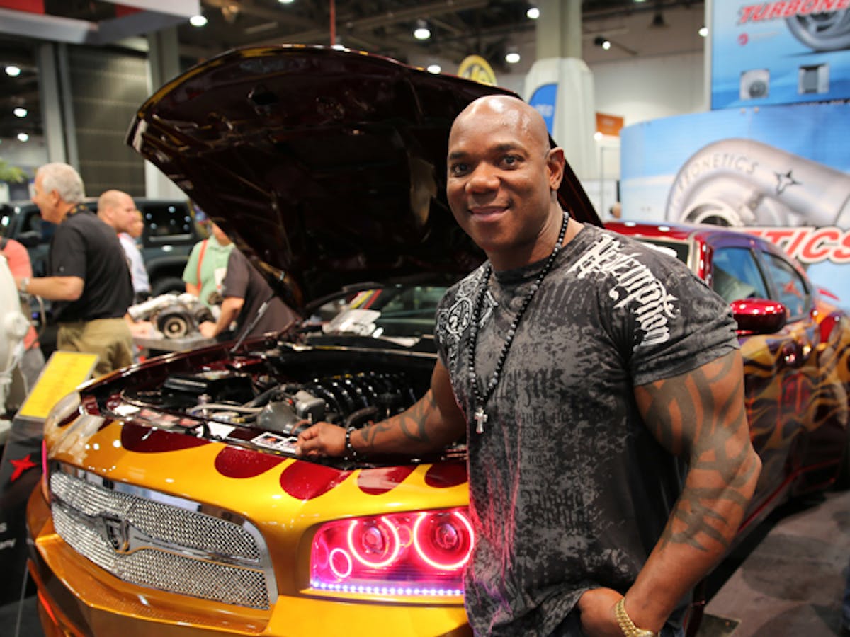 Every year at the SEMA Show, manufacturers bring their best. Companies and individuals spend thousands of hours building the most power and showing off the most muscle they can. This year, Turbonetics took flexing their muscle one step further, by bringing one of the best body builders and his ride out to the show. Flex Wheeler is a Guinness Book of World Records inductee, holder of numerous records and is an “honest to God” car guy! Turbonetics let us peel him away from their booth for a few minutes to not only talk about him (Wheeler), but his high powered twin turbo 07 Charger.