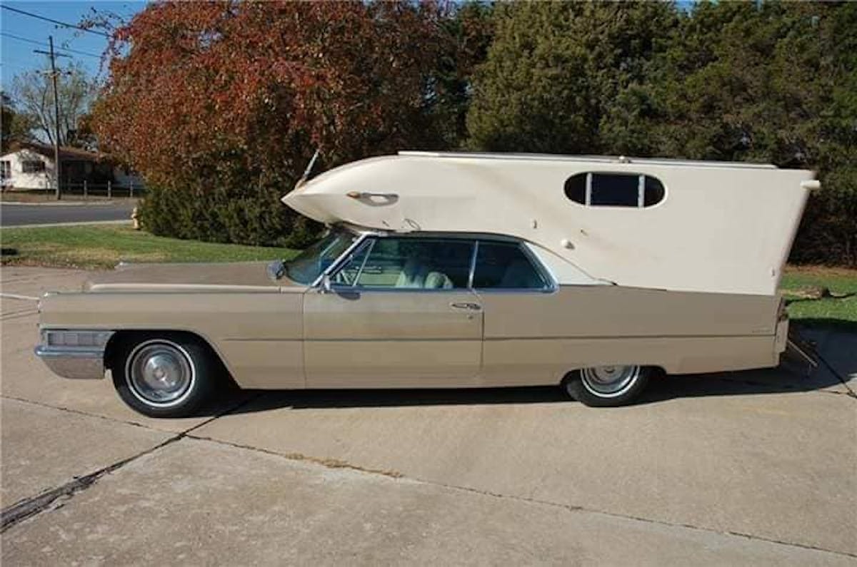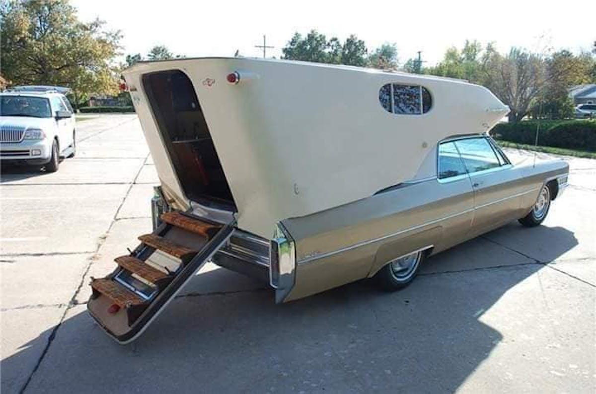 Cadillacs and other big cars from the sixties and seventies have often been described as land yachts. That all seems like hyperbole after seeing this true Chris-Craft of the highway. In an era of beige box RVs with swirl decals, this converted 1965 Cadillac Coupe de Ville is a breath of fresh air. Believe it or not, no modifications were done to the car except removing the trunk lid.