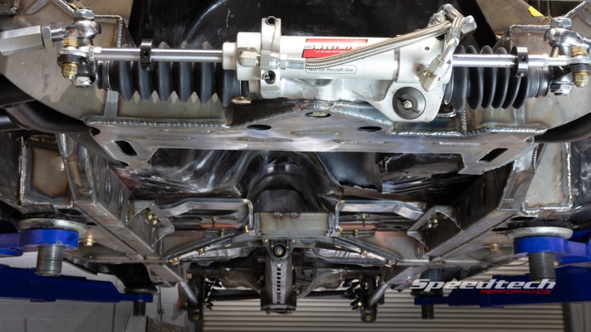 The EFSF features Speedtech Performance’s industry-exclusive forged spindle from 7075 Aircraft aluminum and a dual ram power rack and pinion. No body modifications are necessary to fit a 325/30/19 tire upfront while still retaining a 30-degree steering angle. The EFSF is a removable bolt-in component of the chassis, simplifying the engine and transmission installation. The Speedtech Performance Mopar B-body EFSF offers thoughtfully engineered comfort and performance otherwise unavailable in the market.