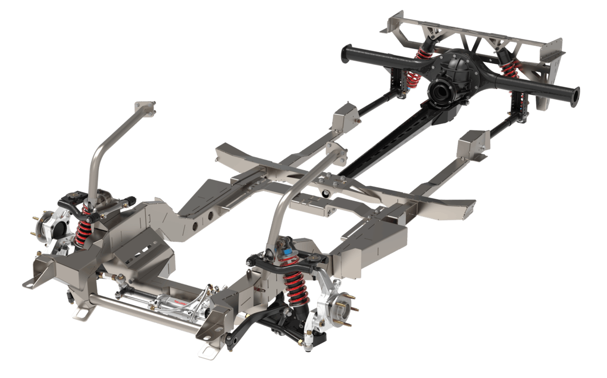 The ExtReme Front Subframe delivers comfort and control through a complete change of the front suspension. The system eliminates the original torsion bars and replaces them with tubular upper and lower control arms and coil-over shocks. The EFSF provides nearly zero bump steer, fully adjustable alignment angles, and a sealed maintenance-free wheel bearing.