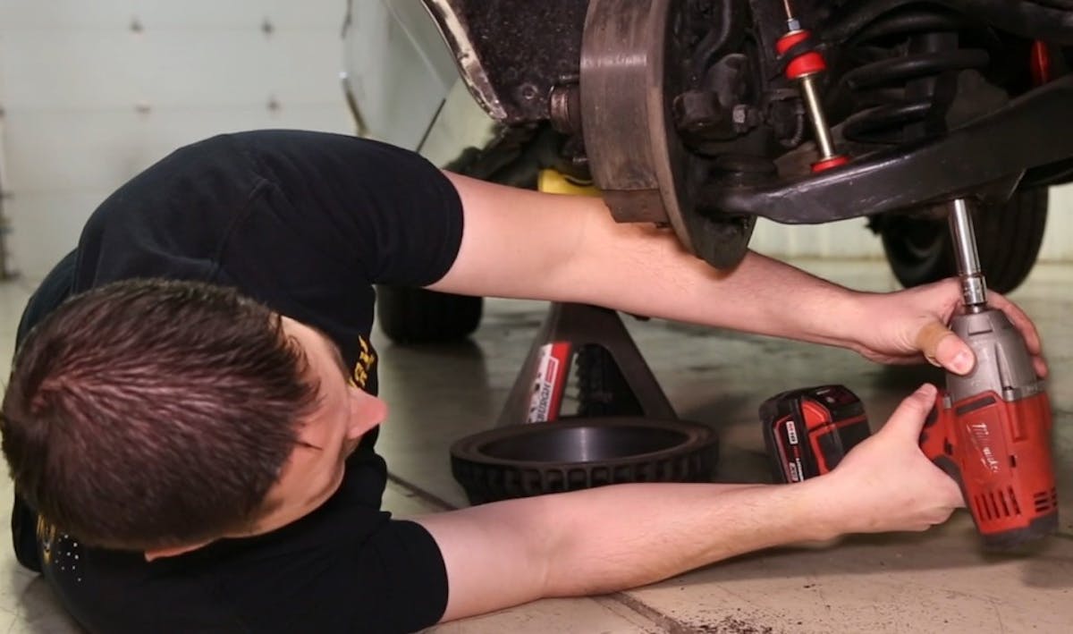 I began the install by checking over all of the components as they were listed on the instructions of the control arms, spindles and brake kit. We painted the spindles before the install, along with our calipers, brackets and anything else we wanted black. I used the Pistol Grip Grease Gun to grease up the 4 ball joints and 8 bushings. While clamping the cross shaft of the upper control arm in the vice, I worked it forward and backward allowing the grease to work it’s way around the bushing.