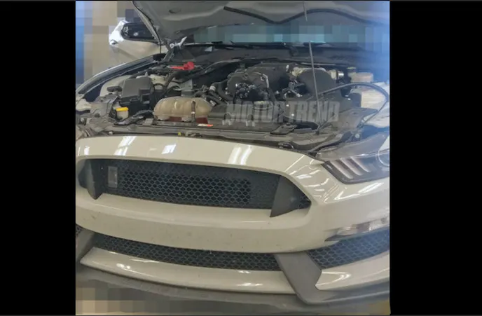 In one of the images, we can clearly see a V8 in what looks like a Ford Shelby GT350 Mustang body. It’s expected that the a supercharged version of the 5.2L flat-plane crank is in cozied up in the engine bay. The blower looks very similar to those used in the Ford Performance supercharger kit on the Mustang GT. This kit is said to make 670 horsepower when paired with a 5.0L V8, so there’s a lot more power to be made when paired to a 5.2L that already makes 526 horsepower and 429 lbs.-ft. of torque.
