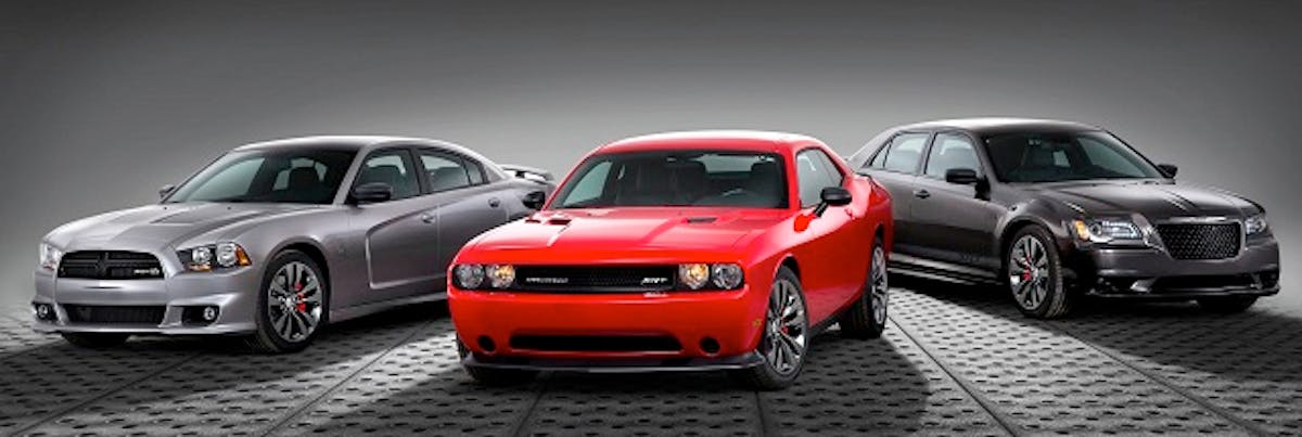 The Charger and Chrysler 300 get a similar black satin trim treatment, though the 300 gets a special Granite Crystal color option, in addition to white and silver, with piano trim on the inside (whatever that is). The Charger, meanwhile, is limited to red, silver, or graphite color options, and shares the Napa leather and suede inserts of the Challenger.