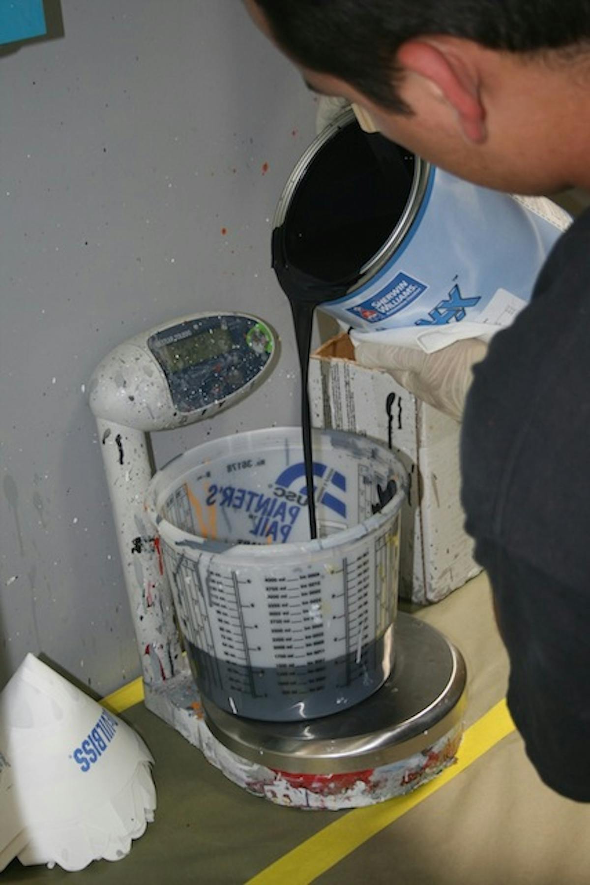 The paint in this case is Sherwin-Williams’ AWX Waterborne Refinish System, an easy-to-apply, fast drying basecoat that provides excellent color match to today’s OEM colors while meeting the strictest VOC limits in the country. We ordered the company’s Dark Gray Pearl that, sad to admit, is a ’96-’02 Volvo color. Shhh, don’t tell anyone.