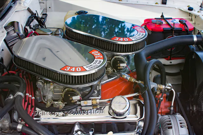 This ’70 Dart now features that same 340 cubic-inch engine, an Edelbrock STR 12 Crossram intake, dual Edelbrock 500cfm carburetors, MSD ignition, an A727 automatic transmission, and 8 and 3/4 -inch rearend.