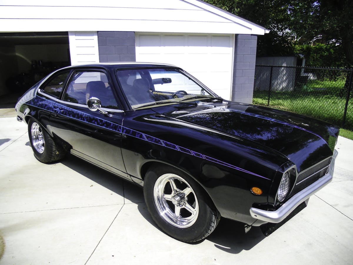 We doubt that you’ll ever see a Pinto as unique as this 1977 custom that belongs to Jon Laun of Louisville, Kentucky. Jon’s car features the guts of a true hot rod: a turbo-charged .40 over 231 cubic-inch Buick six-cylinder engine, turbo-350 automatic transmission, a Hughes 3000 stall converter, Edelbrock intake, Edelbrock camshaft, a Weber side-draft two-barrel carburetor, MSD ignition, and Chrysler 8-¼ inch rearend — just to name a few.