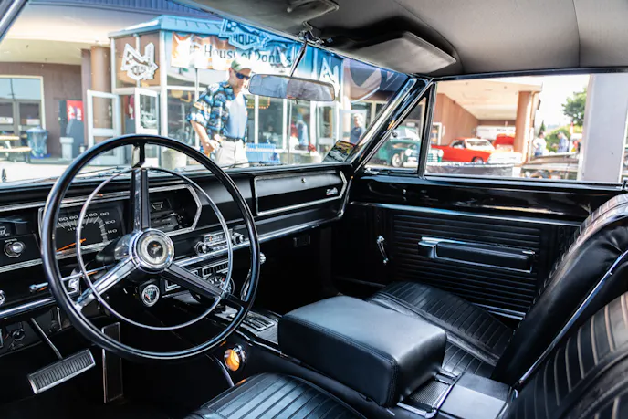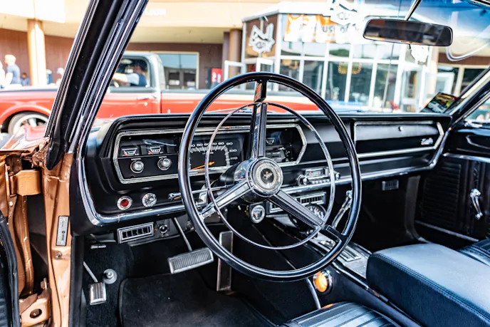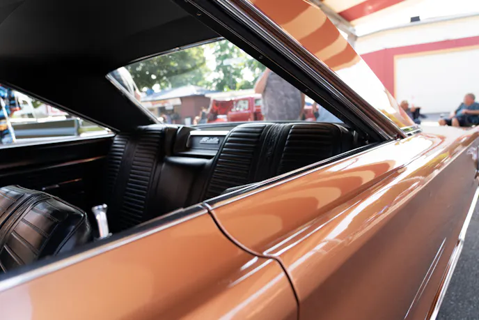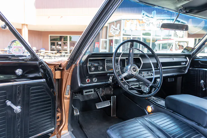 Beyond just the comfort of climate control through air conditioner, the interior is about as tough as it gets. This Satellite has the classic black interior that was made iconic during the muscle era. The pleated inserts on the seats, simple door panels, and the black headliner all complete the look of what it means to be a true musclecar.