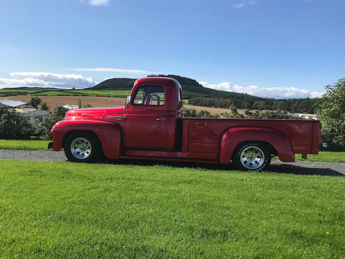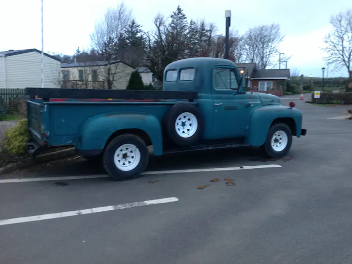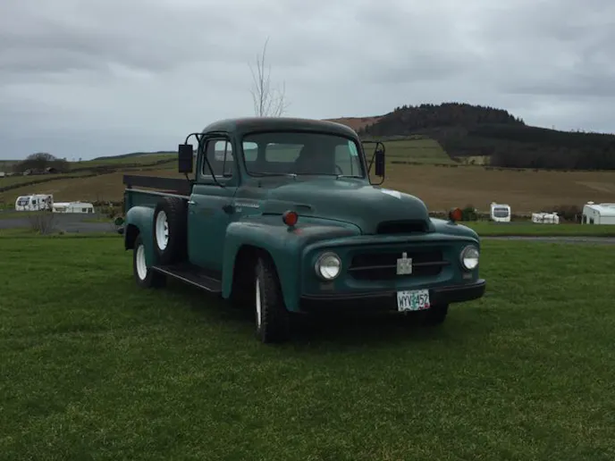 This 1953 International Harvester R110 is a reader submission directly from Scotland. The owner is Thomas McAuley and he’s done a lot of work to this truck since getting it. He’s always liked the International Harvesters going back to his days as a farmer, but now he owns a holiday park. A Holiday Park is similar to what we in the states can an RV park.