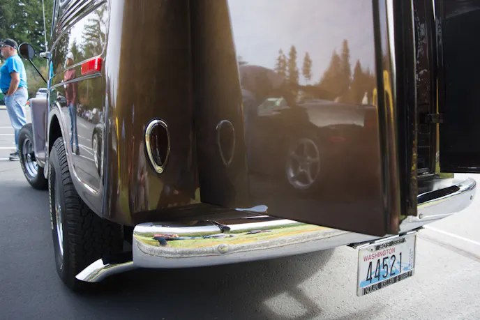 The other interesting thing about this delivery sedan is that it has back windows. Characteristically, a delivery sedan type vehicle has solid panels in the back, and at one time, this one did too. The rear windows were added by a previous owner, to what some might say are the benefit of the vehicle. Bill however, disagrees. “I do plan on removing the rear windows so that it’ll be an actual delivery sedan again,” Bill explained.