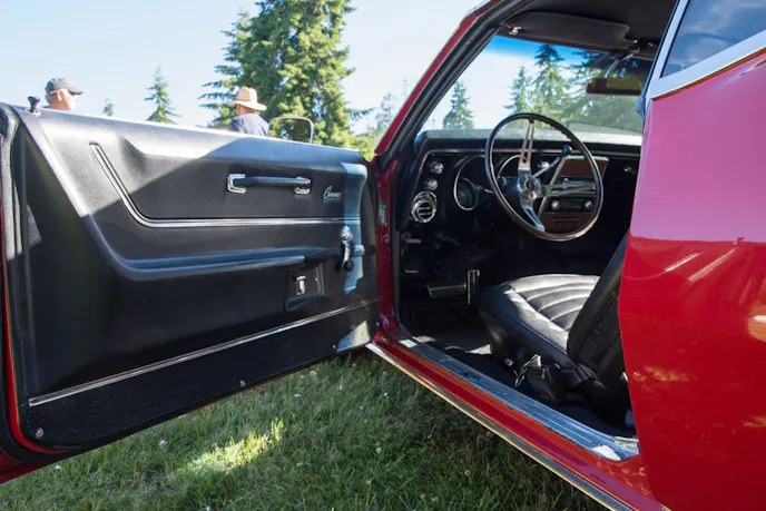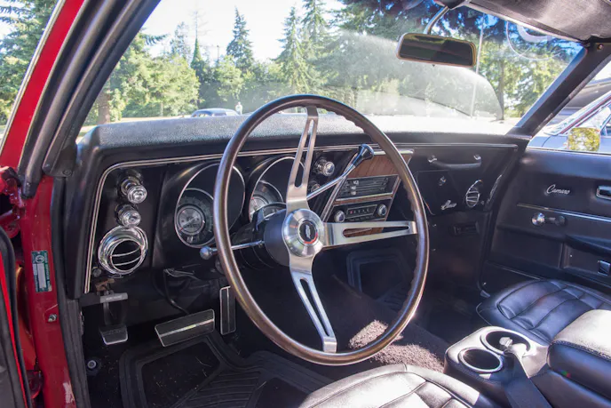 “It’s got that real musclecar style,” he continued, “and I’ve always been a Chevy guy so it’s perfect.” The drivetrain on the car remains as unchanged as the exterior and features a 327 cubic-inch engine and automatic transmission. The interior was also done in the original style and features a slightly unusual option: dash vents without air conditioning.