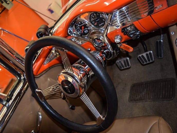 He has also added Vintage Air A/C to improve comfort on those long drives. This 1955 Chevrolet is a comfortable cruiser with air conditioning that can run the quarter mile in the low 10’s.