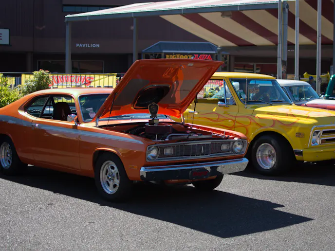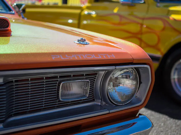 The first thing that will catch your eye about this ’72 Plymouth Duster is the incredible paint that it’s wearing. It is a PPG orange pearl that color shifts to a light green in the right lighting. The paint also features some impressive ghosted decal work done by the owner, Darryl Koenen of Port Orchard, Washington.