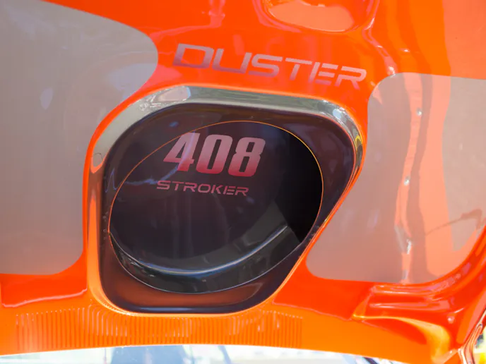 Beyond just looking good, this Duster has an impressive build sheet on it that would make any lover of street muscle drool. It features a 408 cubic-inch Stroker motor, 727 automatic transmission, and Chrysler 8-¾-inch Suregrip rearend with 3.91:1 gearing.
