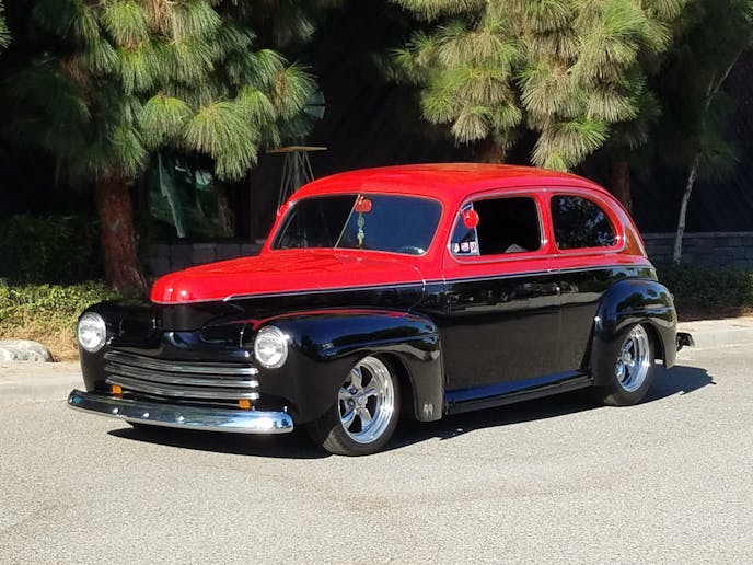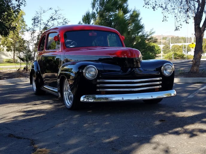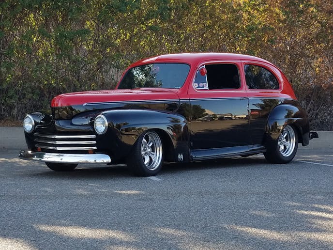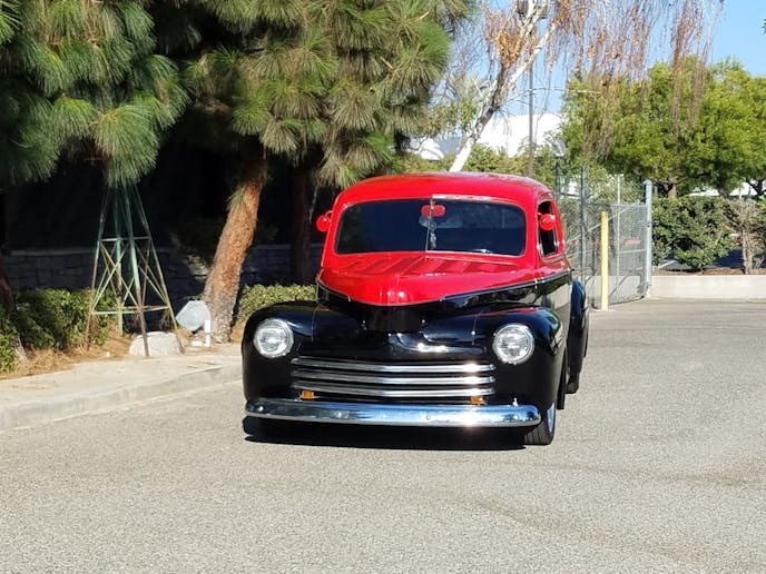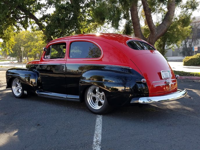 This particular 1946 Ford sedan belongs to Dave Ladnier of Chino, California. He has had the car since 2001 and more than anything he just likes to drive it. A while before seeing it in person, Dave came across this car online and it was all black, straight down to the chrome and stainless trim. “It was nice looking,” Dave told us, “but it was too much.”