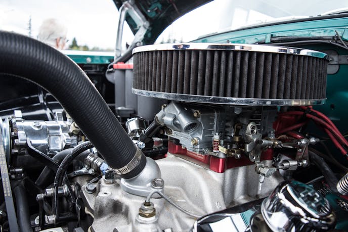 The front suspension features QA1 adjustable coilovers, a 7/8-inch sway bar, drop spindles, adjustable upper control arms, and power rack and pinion steering. The rear suspension is Detroit Spring four leaf with QA1 adjustable shocks to match the front, another 7/8-inch sway bar, and adjustable traction bars. The braking system has also been upgraded all the way around with Wilwood disc brakes. The interior and leather work was all done by Tony at Stitches.