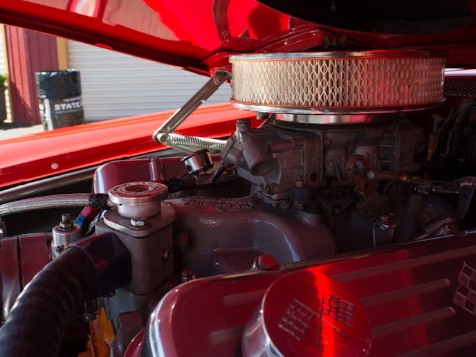This light little car is powered by a 454 cubic-inch big-block engine with an Edelbrock intake and Holley 650cfm carburetor. Duane built custom headers to fit in the car and the rest of the exhaust is piped with 3-inch tubing and Flowmaster mufflers. It has a Ford 9-inch rearend with tall road gears and a four-link rear suspension system.