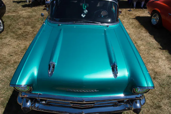 Bill was in the midst of restoring a 1957 Chevy two-door hardtop, but Becky didn’t want to way 5 or 7 years before they’d be able to take a classic car to shows. This one had been sitting for sale since 1996 when Bill looked at it in 2004. It was a turn-key river, it was in good shape, but Bill just couldn’t get over the extra doors.