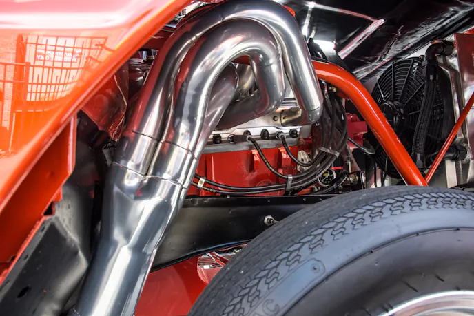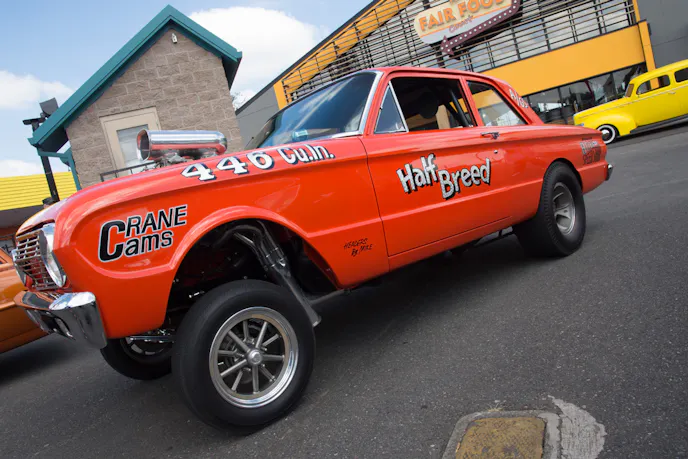 Half-Breed earns its name through its unusual drivetrain. Rather than a conventional Ford setup, this Falcon powered straight down the line by Chrysler. The motor is a completely built 446 cubic-inch Hemi engine with dual C&S built, 850cfm Holley carburetors and an 871-blower.