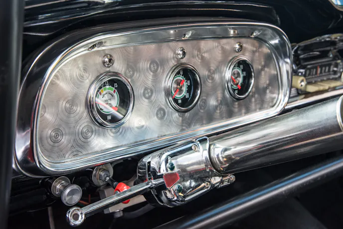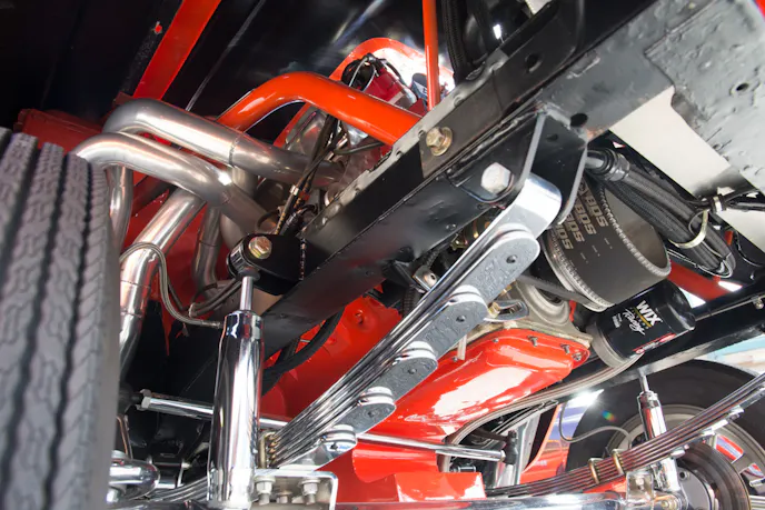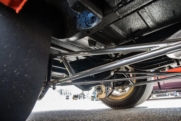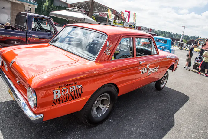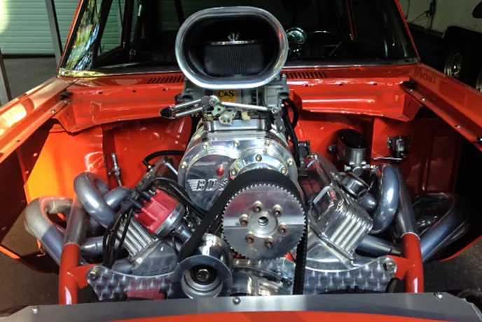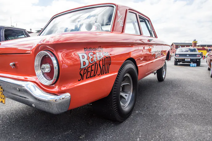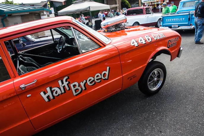 Half-Breed earns its name through its unusual drivetrain. Rather than a conventional Ford setup, this Falcon powered straight down the line by Chrysler. The motor is a completely built 446 cubic-inch Hemi engine with dual C&S built, 850cfm Holley carburetors and an 871-blower.