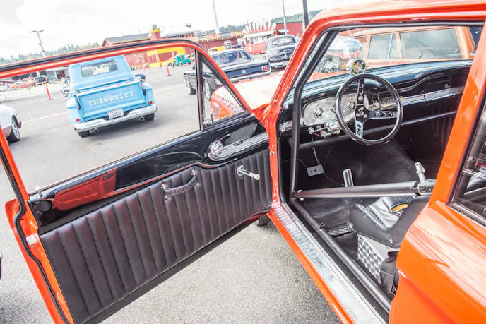 This is the kind of car you can’t just walk past at a show. It’s bright, orange, and loud as hell. We saw it and knew right away that we were going to have to talk to the owner and find out more.