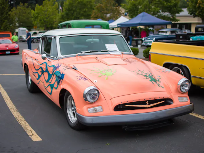 Now this is an unusual street rod. It’s not all too often that you see a Studebaker in any form, let alone one that packs so much power. Originally a Kentucky car, this ’55 Studebaker President Roadster belongs to Jerry Johnson from Port Townsend, Washington.